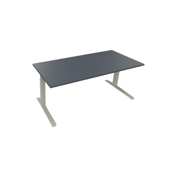 elektrisch höhenverstellbarer Sitz-Steh-Schreibtisch Soennecken All in One 810044982 • für ergonomisches Arbeiten • Höhe: 64,5-127,5cm • Platte: lavagrau, 180x80cm (BxT), rechteckig, verkettbar, Holz, 25mm • Gestell: silberaluminium, C-Fuß-Gestell, Flachkufe Quadratrohr Quadratrohr, Metall • ohne Rollen • Tragfähigkeit: bis 100kg • Anlieferung: komplett montiert