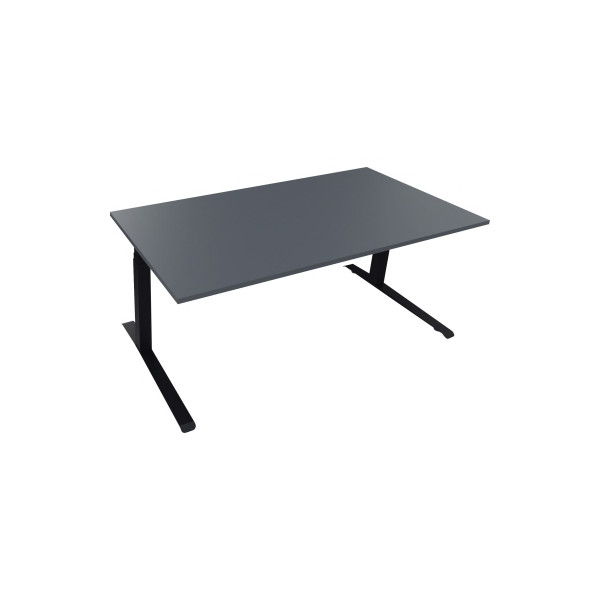 Soennecken Sitz-Steh-Schreibtisch All in One, elektrisch höhenverstellbar, 64,5-127,5cm (H), 180x90cm (BxT), rechteckig, lavagrau / anthrazit metallic