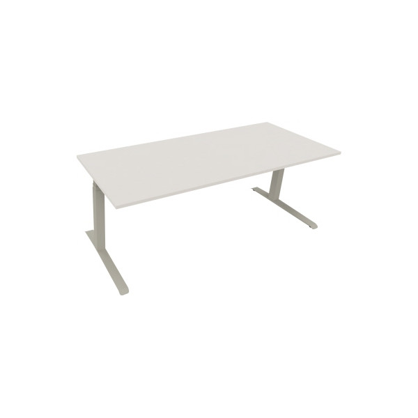 Die elegante rechteckige Tischplatte in der Farbe diamant weiß harmoniert ideal mit dem silberaluminiumfarbenen Gestell, das aus robustem Metall gefertigt ist. Der Schreibtisch überzeugt nicht nur durch sein modernes Design, sondern auch durch seine Funktionalität und Stabilität.