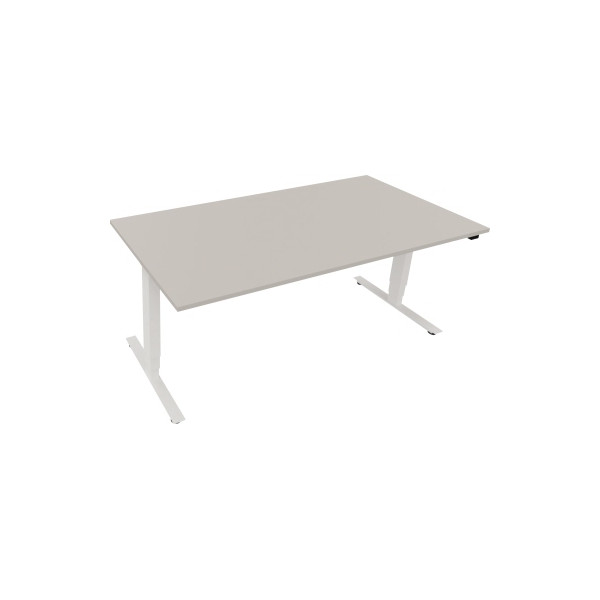 Sitz-Steh-Schreibtisch, elektrisch höhenverstellbar, 62,5-128,5cm (H), 180x90cm (BxT), rechteckig, lichtgrau / weiß