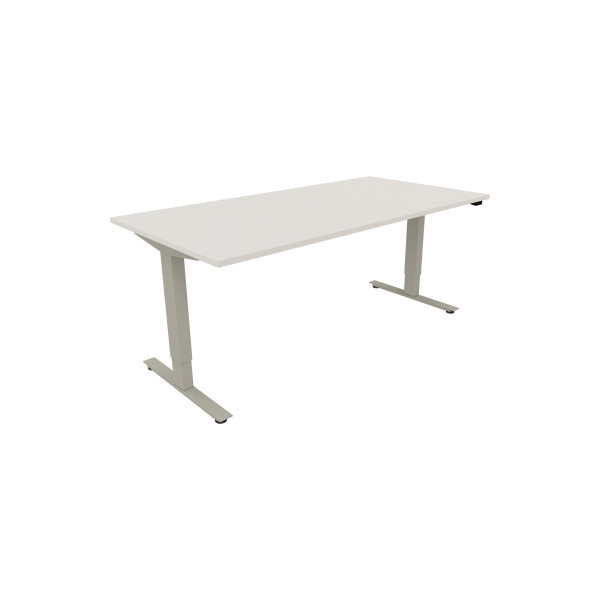 Soennecken Sitz-Steh-Schreibtisch, elektrisch höhenverstellbar, 62,5-128,5cm (H), 180x90cm (BxT), rechteckig, weiß / silberaluminium