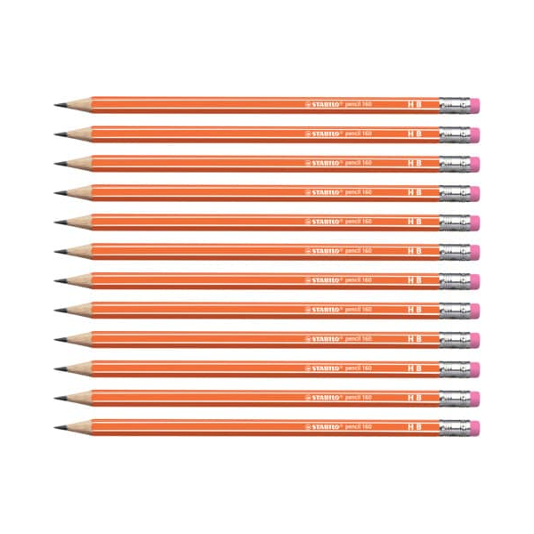 Der STABILO pencil 160 ist ein sechskantiger Schulbleistift mit Radierer, der nicht nur durch sein lebhaftes orangefarbiges Design besticht, sondern auch durch seine Funktionalität. Mit einer hochwertigen, robusten Bleistiftmine von 2,2 mm eignet sich dieser Bleistift perfekt zum Schreiben, Zeichnen oder Skizzieren. Der Radierer im Endstück, der in einer angesagten Kontrastfarbe gehalten ist, ermöglicht es Ihnen, Fehler mühelos zu korrigieren.
