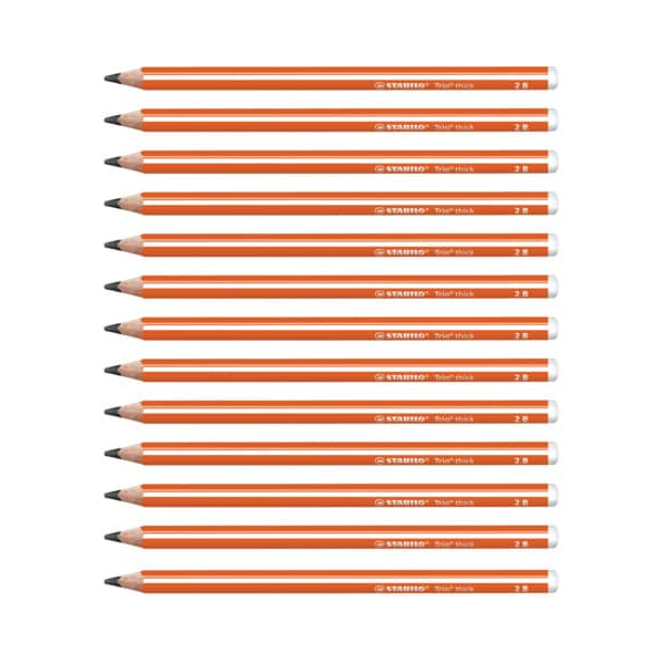Stabilo Bleistift STABILO Trio dick, 399/03-2B, Härte 2B, 3,15mm, orange mit weißen Kantenstreifen
