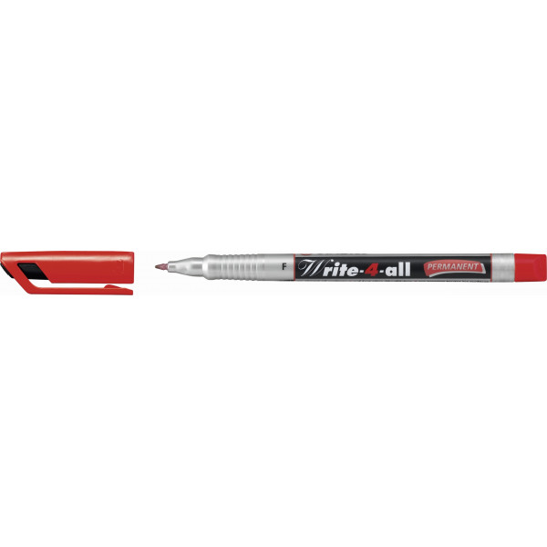 Der Stabilo Write4all Faserschreiber hat eine Schaftfarbe in grau/schwarz und eine Schreibfarbe in rot. Die Rundspitze aus Kunststoff ist widerstandsfähiger als bei herkömmlichen Markern und ermöglicht dadurch ein klares und deutliches Schreiben auf harten Oberflächen. Die Strichstärke beträgt 0,7 mm (F).