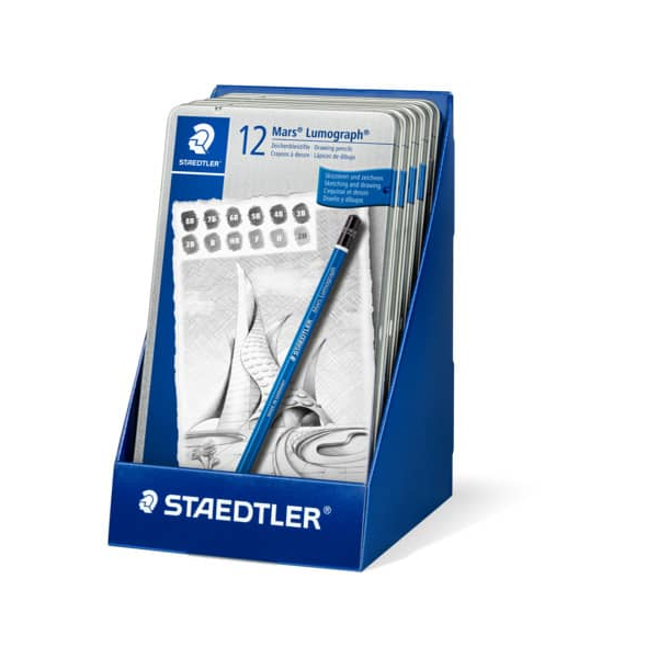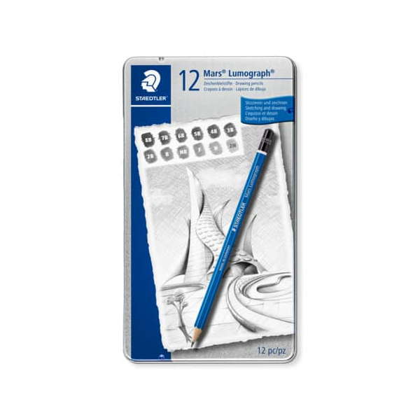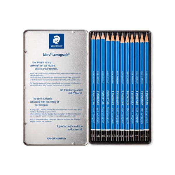 Staedtler Bleistift-Set Mars Lumograph 100, 100 G12, Härte 6B,5B,4B,3B,2B,B,HB,H,2H,3H,4H,F, blau
