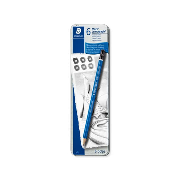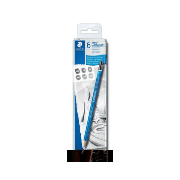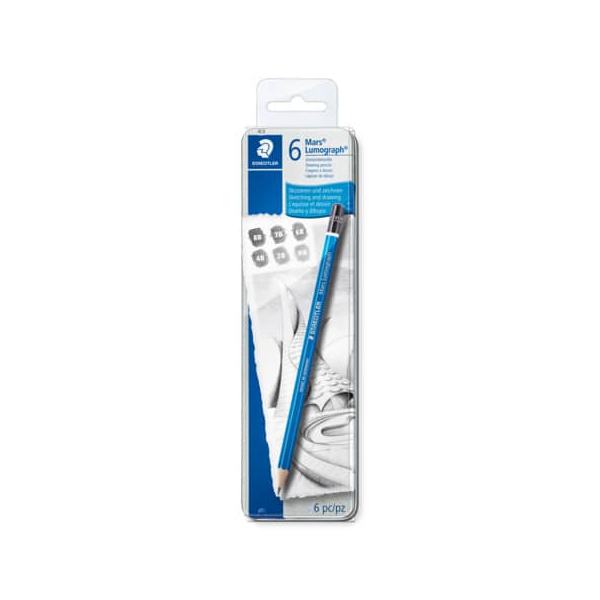 Staedtler Mars Lumograph 100 100 G6 Bleistift-Set in blau.
