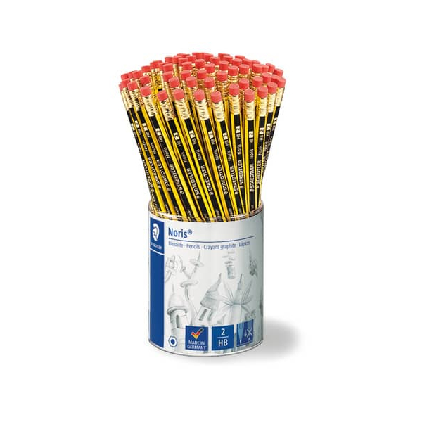 Staedtler Bleistift-Set Noris 122 im Köcher, 122 KP72, Härte HB, 2mm, schwarz/gelb, mit Radiergummi