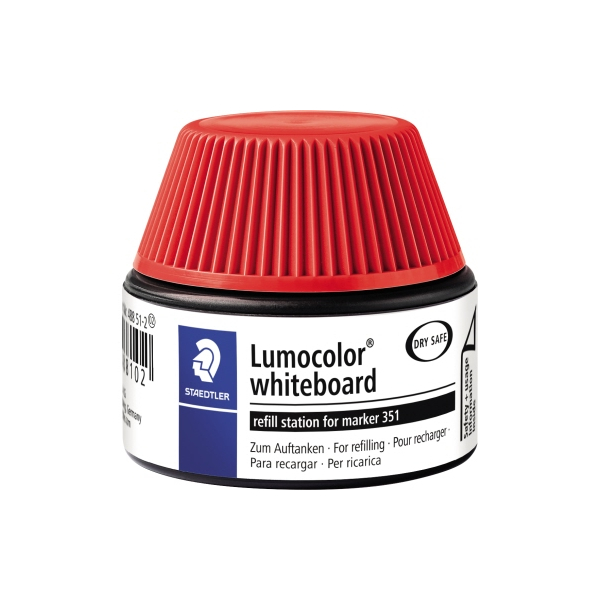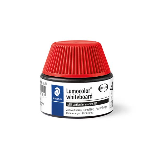 Entdecken Sie die Boardmarker-Nachfülltinte Lumocolor, 48851-2 in rot von Staedtler. Diese innovative Tinte ermöglicht ein einfaches und sauberes Nachfüllen der Lumocolor® Marker. Stellen Sie einfach den Stift oder Marker in die Tankstelle, und nach wenigen Minuten ist der Stift wieder schreibbereit. Nach 3 bis 4 Stunden ist er vollständig befüllt. Überfüllen ist unmöglich, da der Stift nur die maximal mögliche Tintenmenge aus der Tankstelle herauszieht.