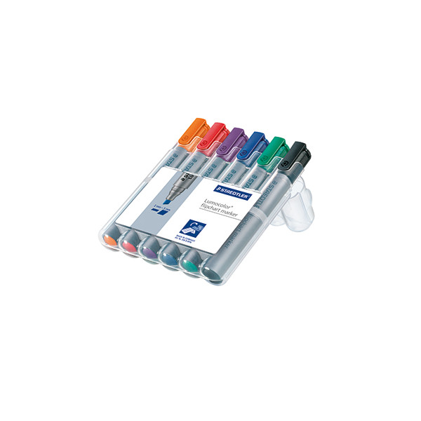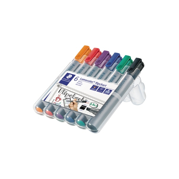 Staedtler Flipchartmarker-Set Lumocolor, 356 B WP6, Packung, orange,rot,grün,violett,blau,schwarz, 2-5mm Keilspitze