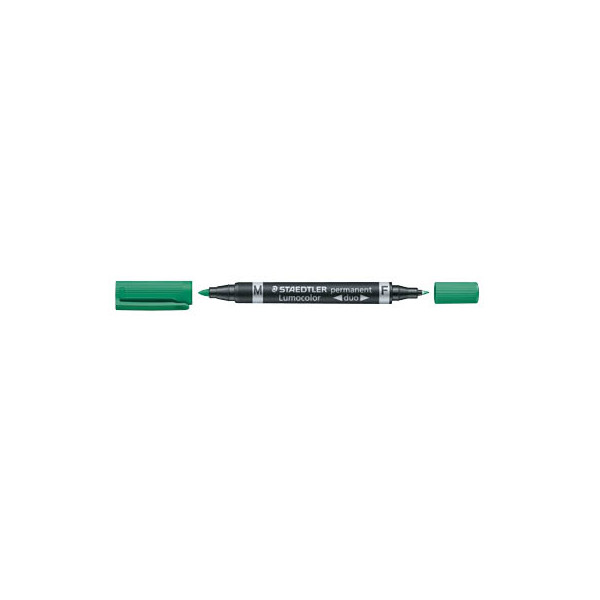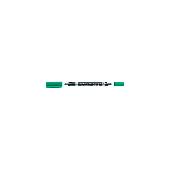 Staedtler Lumocolor duo 348-5 Permanentmarker nachfüllbar. • Schreibfarbe: grün / grün • wasserfest,lichtbeständig, geruchsarm, schnell trocknend • Strichstärke: 0,6-1,5mm • Spitzenform: Rundspitze/doppel