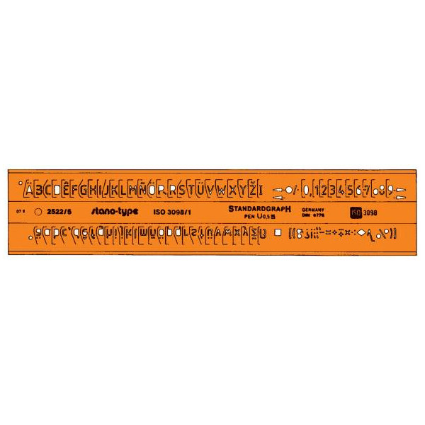 Standardgraph 2522-35 Schablone in orange-transparent. • Material: Kunststoff • Ausführung: Schrifthöhe 3,5mm