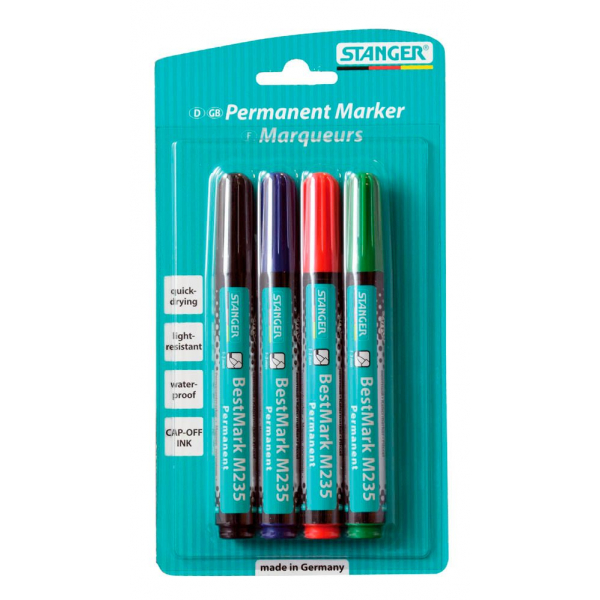 Stanger Permanentmarker BestMark M235, 712012, Packung, 4-farbig sortiert, 1-3mm Rundspitze