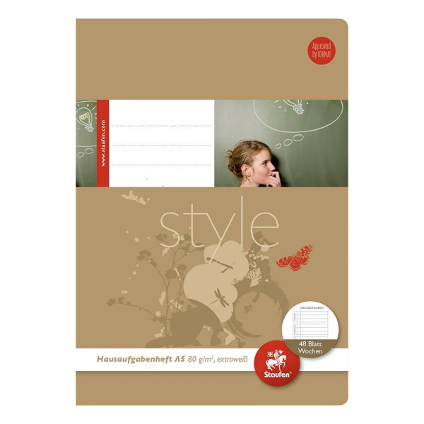 Staufen Hausaufgabenheft 040548003 Style, Lineatur SL / Lineatur SL, A5, 80g, braun, 48 Blatt / 96 Seiten