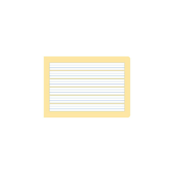 für Druckschrift und Vereinfachte Ausgangsschrift, für Links- und Rechtshänder, farbig hinterlegte Lineatur mit gelbem Mittelband und Schreiblernhäusern, neu: runde Ecken verhindern "Eselsohren"