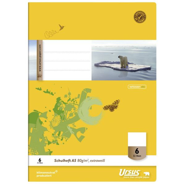 Ursus präsentiert das Schulheft 040532006 in Lineatur 6. Das A5-Heft verfügt über 32 Blatt bzw. 64 Seiten und ist in einem leuchtenden Gelb gehalten. Das 80g Qualitätspapier ist elementar chlorfrei gebleicht und der Umschlag ist strapazierfähig mit abgerundeten Ecken, um Eselsohren zu vermeiden.