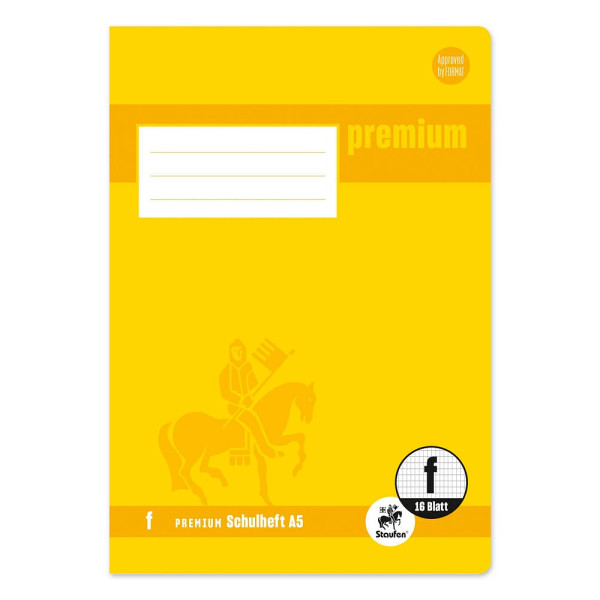 Staufen Schulheft 734010311 Premium, Lineatur 8f / rautiert mit weißem Rand / keine, A5, 90g, gelb, 16 Blatt / 32 Seiten