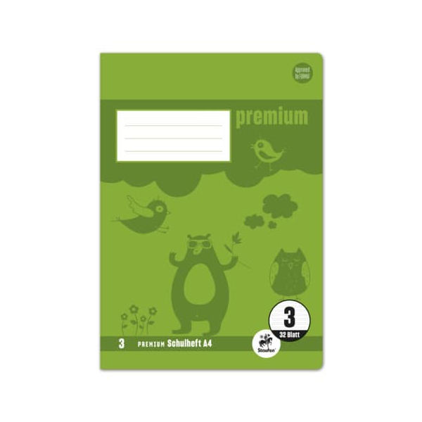 Staufen Schulheft 734010633 Premium, Lineatur 3 / Schreiblern-Lineatur / keine, A4, 90g, grün, 32 Blatt / 64 Seiten