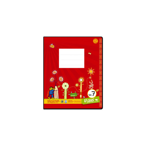Das Wörterheft 061551057 von Ursus ist perfekt für Schülerinnen und Schüler, um den Wortschatz zu vergrößern und die Sprache zu erleben. Das Heft hat eine W.7 Lineatur und ist Quart (19,5x24cm) groß. Der Einband ist in einem kräftigen Rot gehalten und die Ecken rechts abgerundet. Das Heft hat 40 Blatt bzw. 80 Seiten mit einer Grammatur von 80g und ist aus 100% Recyclingpapier hergestellt. Es ist mit dem Blauen Engel und dem Österreichischen Umweltzeichen ausgezeichnet, was bedeutet, dass es energie- und wassersparend hergestellt wurde und besonders schadstoffarm ist.