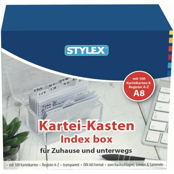 Holen Sie sich die Karteibox A8 quer transparent von Stylex und bringen Sie Ihre Karteikarten in Ordnung – Sie werden es nicht bereuen!