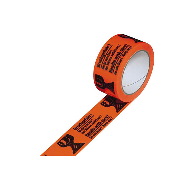 • Material: Polypropylen (PP) • Folienstärke: 53µm / my • Farbe: orange/schwarz • Aufdruck: Bruchgefahr • leise abrollbar
