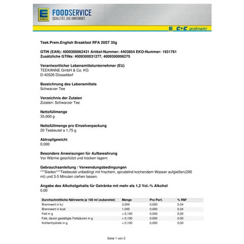 Probieren Sie den Fin.English Breakfast Se. kuv. Aro.sch. Schwarztee noch heute und überzeugen Sie sich selbst von seinem vollmundigen Geschmack!