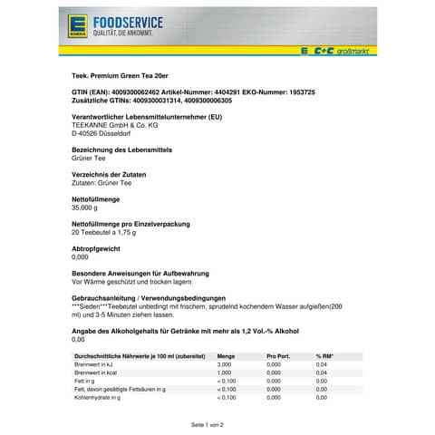 | 20 Portionen 20 Portionen in Tee anzeigen | |