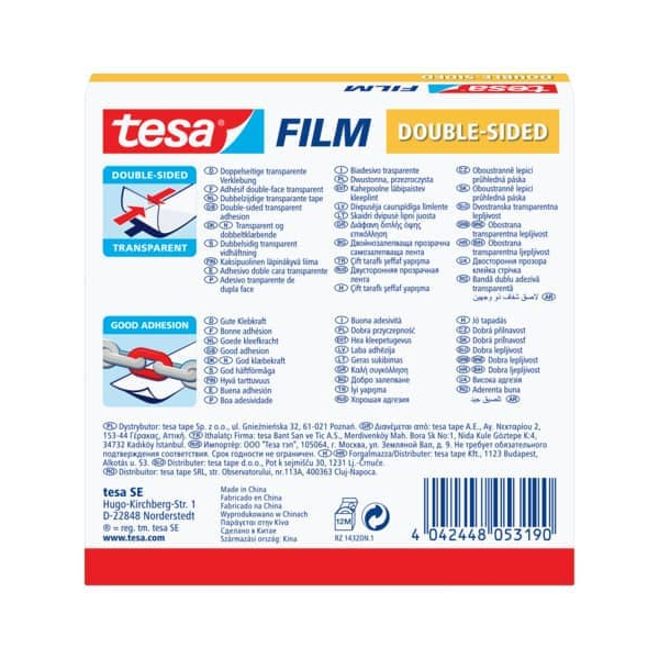 Entdecken Sie das tesafilm® doppelseitiges Klebeband von Tesa, Modellnummer 57954-00000-01. Dieses hochqualitative doppelseitiges Klebeband ist die perfekte Lösung für alle Ihre Klebeprojekte. Es ist nicht nur transparent, sondern auch hervorragend geeignet für Fixierungen auf Papier und anderen Materialien.