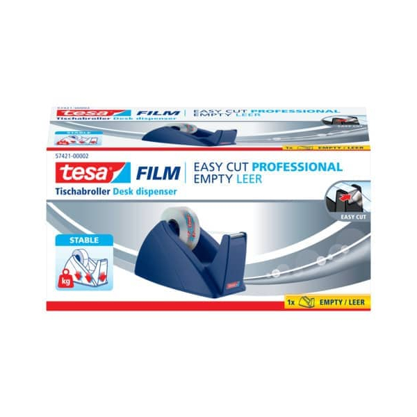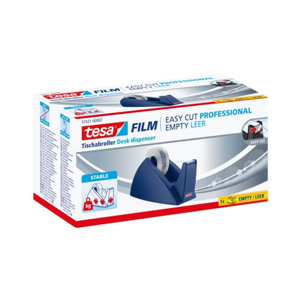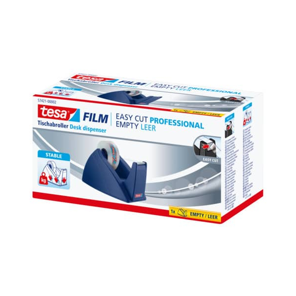 Tesa Klebebandabroller Easy Cut 57421-00002-03, für Klebebänder bis 19mm x 33m, royalblau