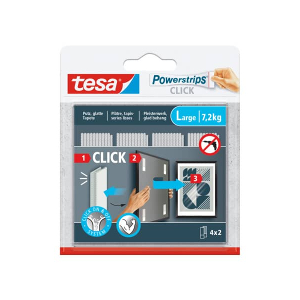 Tesa Klebepads 77722-00000-00 Powerstrips Click Large, 4x 2 Stück, 2x8,5cm (BxL), wiederablösbar