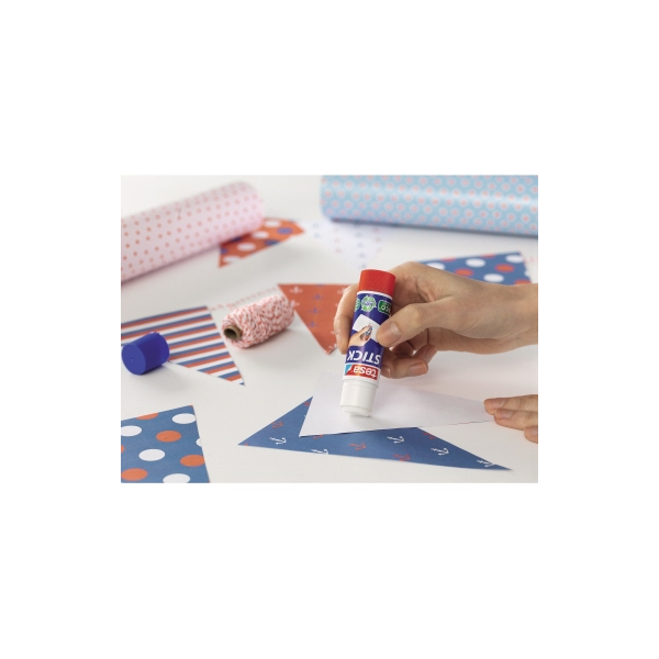 Der tesa® Stick ist geruchsneutral und kommt ohne Lösungsmittel aus, was ihn besonders umweltfreundlich macht. Dank der Steckverschlusskappe mit Rollstopp ist der Klebestift zudem einfach zu handhaben und verhindert ein ungewolltes Austrocknen. Seine mittelstarke Klebkraft ermöglicht es, fast alle Werkstoffe wie Papier, Fotos, Filz, Hartschaum und viele andere Materialien sicher zu verbinden.