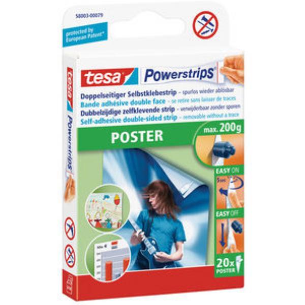 Tesa Klebestrips 58003-00079-04 Powerstrips POSTER, 20 Stück, 14,5x42mm (BxL), doppelseitig, wiederablösbar