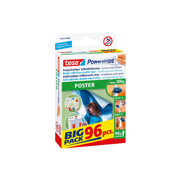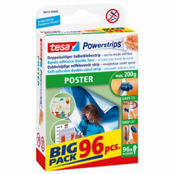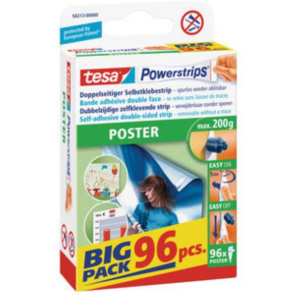 Tesa Klebestrips 58213-00000-03 Powerstrips POSTER, 96 Stück, 14,5x42mm (BxL), doppelseitig, wiederablösbar