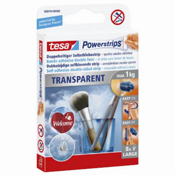 Tesa Klebestrips 58810-00000-20 Powerstrips TRANSPARENT, 8 Stück, 20x50mm (BxL), doppelseitig, wiederablösbar