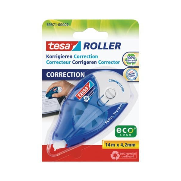 Tesa Korrekturroller 59971-00002-05 ecoLogo, blau/transparent, 4,2mm x 14m, nachfüllbar, in Blister