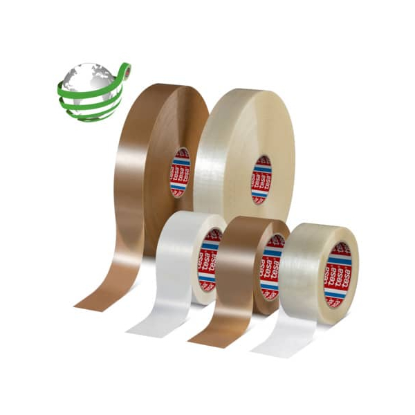 Das tesapack Eco Ultra Strong 60418 ist mit einer Schmelzklebmasse aus synthetischem Kautschuk ausgestattet, die eine hohe Anfassklebkraft bietet. Dank des dünnen Polyesterträgers ist das Band dünn, anpassungsfähig und gleichzeitig reißfest. Es zeichnet sich durch eine geringe Abrollkraft aus und bietet eine hervorragende sofortige Schließleistung, was es ideal für automatisierte Verpackungsprozesse macht.
