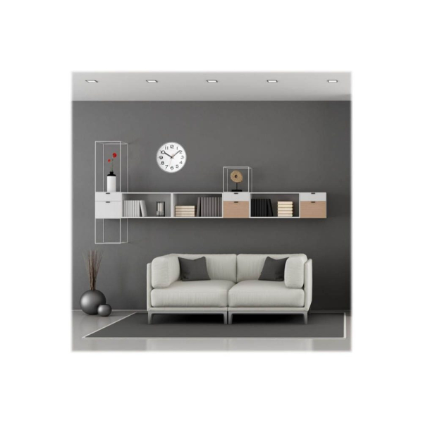 Die Wanduhr besticht durch ihr flaches Design und den extra schmalen Rahmen, was sie zu einem idealen Accessoire für minimalistisch eingerichtete Räume macht. Das große, gut ablesbare Zifferblatt sorgt dafür, dass Sie die Zeit stets im Blick haben.