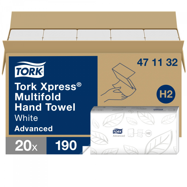 Tork Falthandtücher H2 Xpress Advanced 471132, 21,3x23,4cm, 2-lagig, Interfold-Falz (W-Falz), weiß, Recyclingpapier
