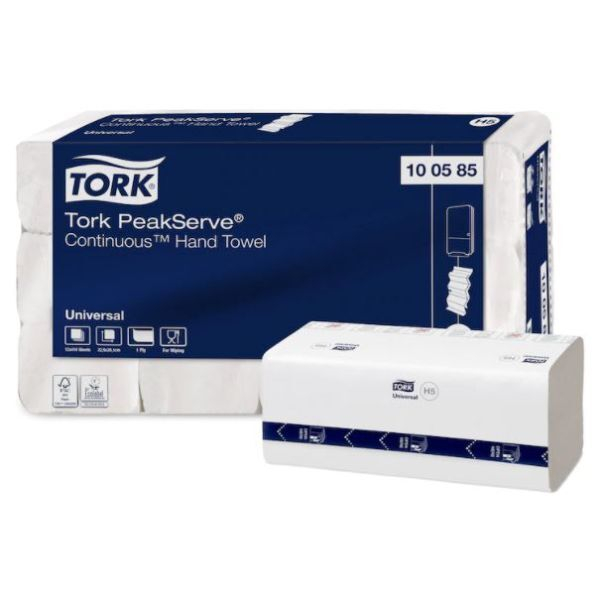 Tork H5 PeakServe Continous Universal 100585 Falthandtücher in weiß. • Oberfläche: nicht geprägt • Lagen: 1-lagig • Material: Zellstoff