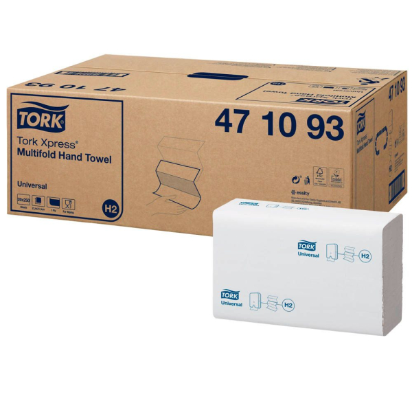 Tork Handtuchpapier Tork Xpress®, System-H2 - Multifold, Qualität Universal, Falzung Multifold Z, 1-lagig, weiß, 21,3 x 23,4 cm, 20 x 250 Tücher
