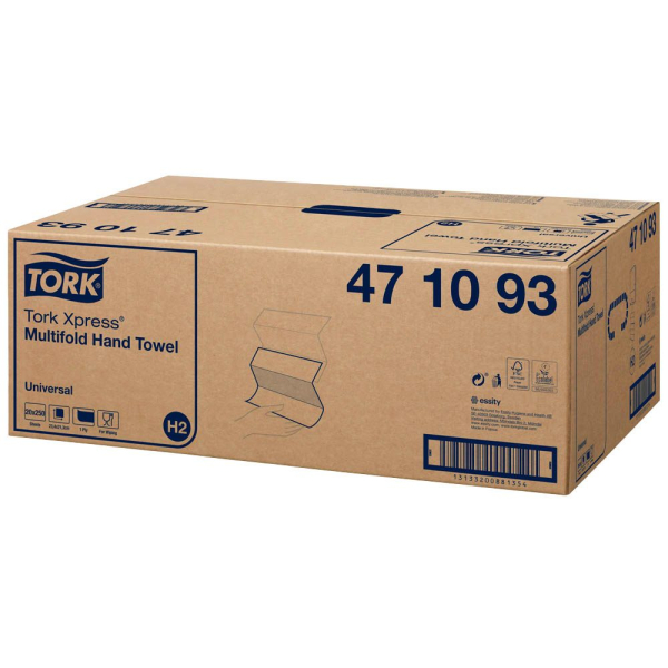 Entdecken Sie die Vorteile des Handtuchpapiers Tork Xpress®, System-H2 - ein hochwertiges Produkt aus der Serie Xpress H2 Universal, das für eine effiziente Benutzung in Ihrem Waschraum sorgt. Dank der kosteneffizienten Größe und Universal-Qualität bieten diese Falthandtücher ein großartiges Preis-Leistungs-Verhältnis in wenig bis mittelstark frequentierten Waschräumen. Die Papiertücher können mit berührungslosen Tork-Spendern genutzt werden, was die Hygiene erhöht. Die Einzeltuchentnahme reduziert sowohl die Abfallmenge als auch die Gefahr einer Kreuzkontamination.