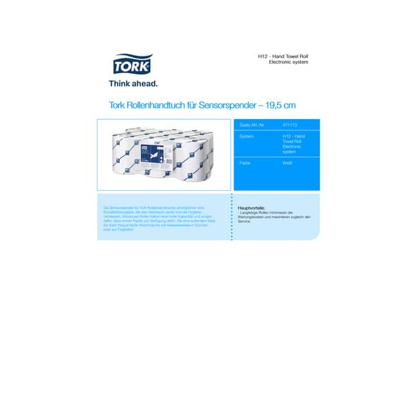 Überzeugen Sie sich selbst von der Qualität und Hygiene der Rollenhandtücher 471113 von Tork und bestellen Sie noch heute!