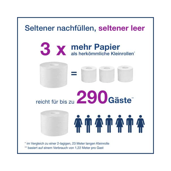 Entdecken Sie das Toilettenpapier T7 Advanced von Tork, das für höchste Ansprüche in sanitären Bereichen entwickelt wurde. Mit einer beeindruckenden Blattanzahl von 820 pro Rolle bietet dieses hülsenlose Toilettenpapier ein hervorragendes Preis-Leistungs-Verhältnis und sorgt dafür, dass Ihre Gäste immer genug zur Verfügung haben.