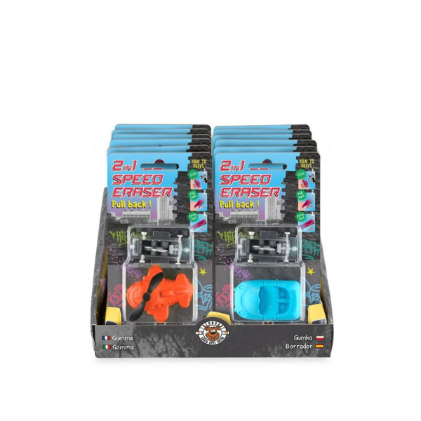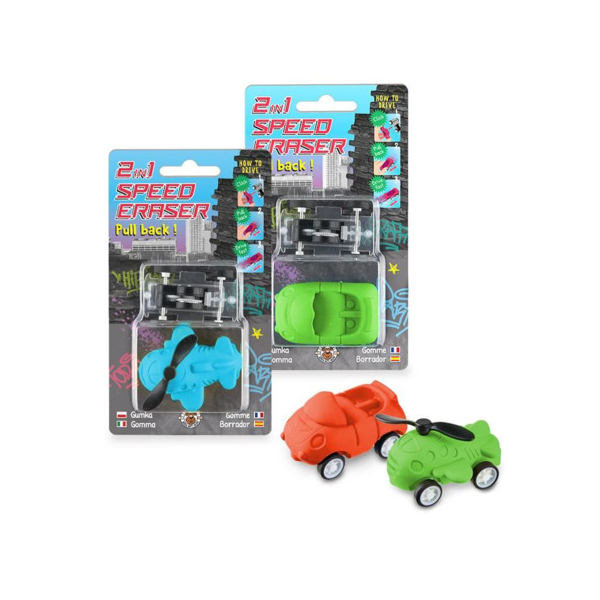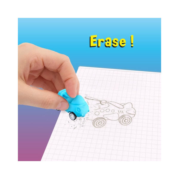 | Ein cleverer Radierer, der gleichzeitig als Rückzieh-Spielezug funktioniert! Einfach das Radierer-Gehäuse auf das Fahrwerk stecken, zurückziehen und losflitzen lassen. Radieren und Action in einem. Spaß für Schule und Freizeit! | |