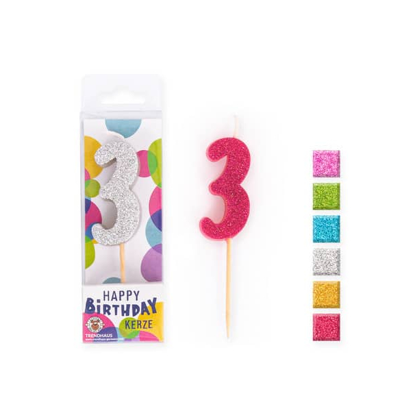 Feiern Sie den besonderen Tag mit der einzigartigen Geburtstagskerze von Trendhaus! Die Mini Glitter Geburtstagskerze in der Form der Zahl 3 ist das perfekte Highlight für jede Geburtstagstorte. Mit einer Kombination aus strahlenden Farben wie Pink, Lila, Blau, Grün, Gelb und Silber bringt sie garantiert Freude und Glanz in jede Feier.