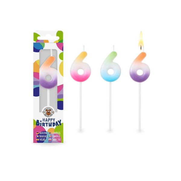 Trendhaus Geburtstagskerze Zahl 6 sortiert