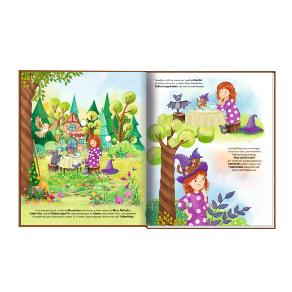 n diesem zauberhaften Vorlesebuch möchte die junge Hexe Melinda Mondschein ihren besten Freund Fin mit einer ganz besonders magischen Geburtstagsnacht überraschen. Die wichtigste Zutat dafür sind die Gäste. Und so beginnt eine spannende Reise … Wird die Überraschung gelingen? Mit ganz viel Liebe zum Detail gezeichnet und geschrieben, laden die bunten Seiten zum immer wieder gemeinsam Anschauen, Lesen und Entdecken ein. Mit extra Stanzungen im Cover und auf den Innenseiten für zauberhaft-witzige Einblicke! Maße: 24 x 29 cm.
