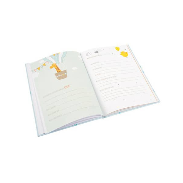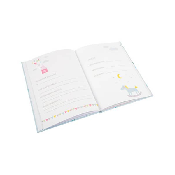 Das Babytagebuch im Format 21x28 cm ist ein toller Begleiter für die ersten Tage, Wochen und Monate im Leben. Hier können die frischgebackenen Eltern wichtige Daten, Tage und Ereignisse ganz einfach und schnell eintragen und verewigen. Auf rund 44 illustrierten Seiten können z. B. Augenfarbe, Größe, Gewicht bei der Geburt, besondere Ereignisse an dem Tag und natürlich auch die wichtigen Bezugspersonen wie Großeltern, Pate/Patin eingetragen werden. Das Babytagebuch kann man natürlich für das Baby, die Eltern- und Großeltern oder auch als Geschenk für Onkel, Tanten, Pate/Patin erstellen und verschenken. Mit einem Babytagebuch zaubert man ganz sicher ein Lächeln auf das Gesicht des beschenkten und sorgt für große Freude.