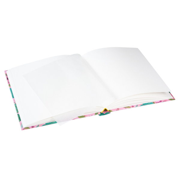 Das Fotospiralbuch „Tropical Leaves“ im quadratischen Format 25 x 25 cm kombiniert edles Design mit praktischer Funktionalität. Der hochwertige Kunstdruck-Einband ist mit einem stilvollen Tropenmotiv sowie einer goldenen Reliefprägung veredelt – ein echter Hingucker. Innen erwarten dich 60 weiße Seiten, geschützt durch Pergamin-Zwischenblätter, ideal zum sicheren Einkleben deiner Lieblingsfotos. Die robuste Spiralbindung sorgt für komfortables Blättern und ein flaches Aufliegen.