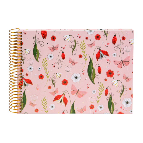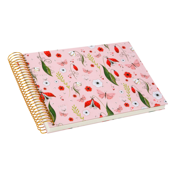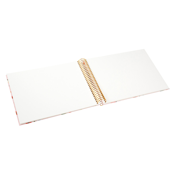 Fotospiralbuch Secret Garden Pink, 17 x 23 cm. Enthält 40 weiße Innenseiten aus Kunstdruckpapier mit Reliefprägung in Gold, ohne Pergaminzwischenblätter, mit goldener Spirale – ideal zum kreativen Gestalten und Festhalten besonderer Erinnerungen.
