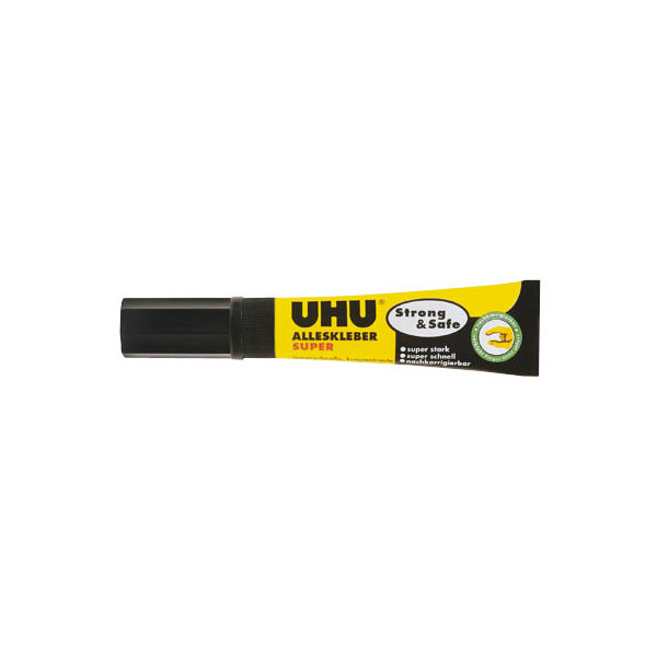 Entdecken Sie den Klebstoff Super Strong & Safe in der praktischen Tube mit 7g Inhalt, hergestellt von UHU. Diese neueste Alleskleber-Generation bietet eine beeindruckende Kombination aus Stärke, Geschwindigkeit und Sicherheit.